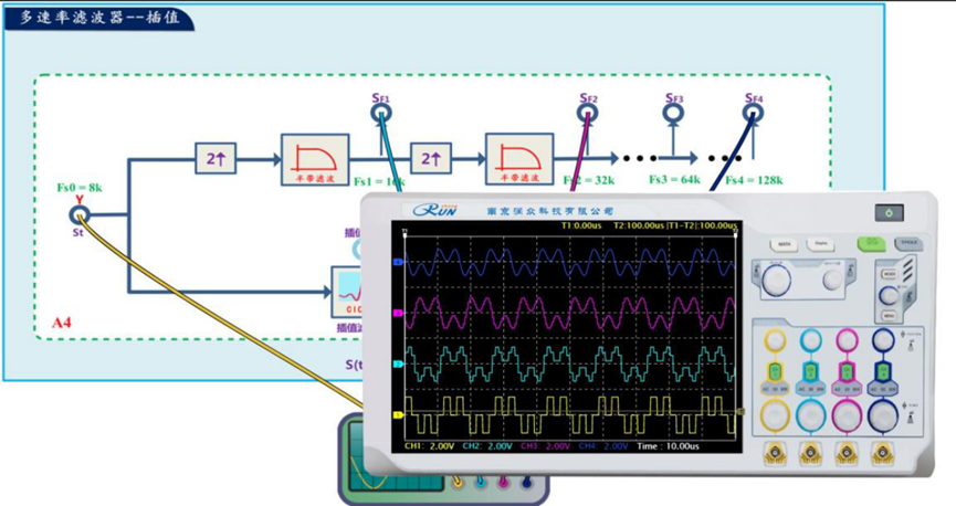 内置测试仪器:音视频信号源、4 通道示波器(含频谱 / 星座图)、8 通道逻辑分析仪、误码仪、高频信号源、频率计、扫频仪、失真度仪等。