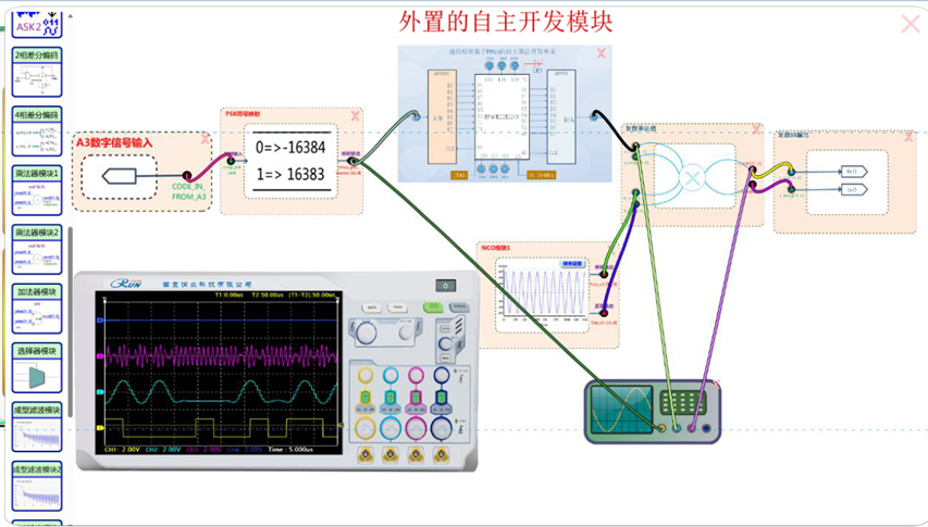 4、自主设计电路(算法)可替换平台内通信系统中单元电路,在场景中评测设计电路性能,提升学习兴趣;