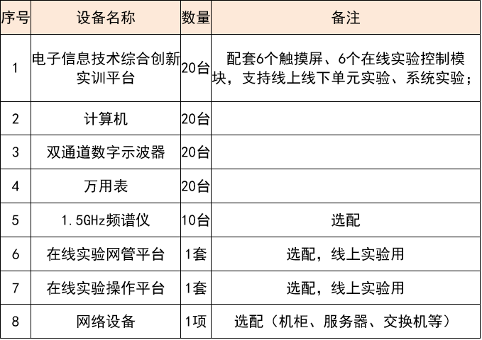 四、电子信息技术综合创新实验室设备配置